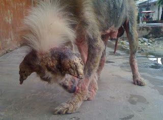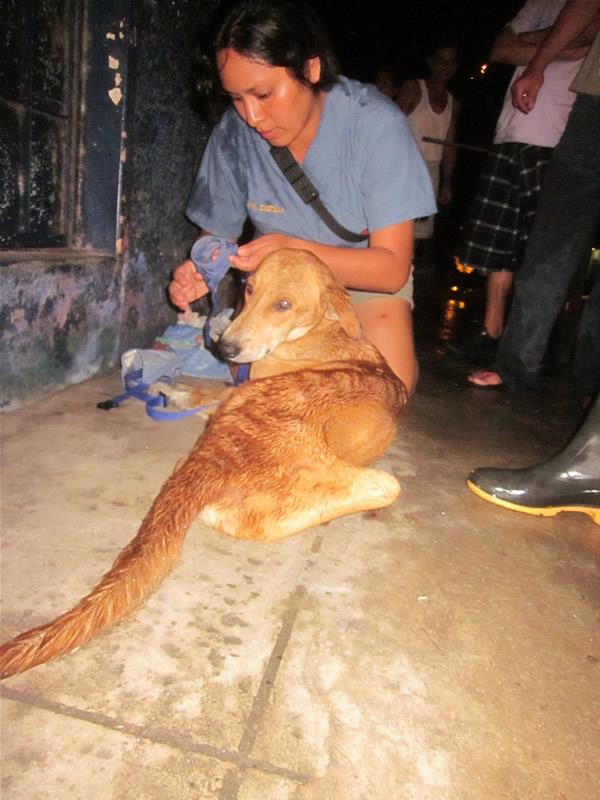 | La Dra Isabel en acción, rescatando un perro de calle que había sido atropellado, en el mercado Modelo. Siempre con cariño... |